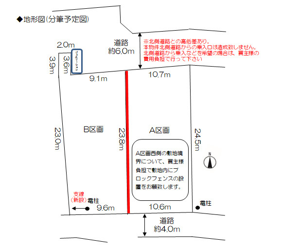 物件概要 物件番号 T-046 物件名 宇都宮市戸祭1丁目 所在地 宇都宮市戸祭1丁目 交通 JR宇都宮線『宇都宮』駅まで徒歩44分(約3.5km) 学区 戸祭小学校・星が丘中学校 用途地域 第一種住居地域 地目 宅地 建ぺい率 60% 容積率 200% 土地面積 252.24m2(76.30坪) 販売価格 23,800,000円(非課税) 引渡時期 2025年11月末日以降 設備 公営水道・公共下水・個別プロパン 接道 北側 約6m、南側 約4m 私道負担 なし 法令上の制限 宅地造成工事規制区域 取引態様 売主 備考 当該区画はB区画です。 他にA区画 258.63㎡(78.23坪)2,530万円 建築条件付きがございます。 1.市立地適正化区域:居住誘導区域 2.B区画水道加入金20㎜継承可。A区画水道加入金支払い必要【20㎜の場合:129,100円(税込)】。 3.造成工事実施予定 2025年11月末日に工事完了予定。 4.解体工事時のガラ・ズリ等は契約不適合の対象外です。 5.関東バス「仁良塚街道入口」バス停まで220m 日光方面行き 関東バス「仁良塚街道入口」バス停まで330m 宇都宮駅行き 情報更新日 2025年9月21日 次回更新予定日 2025年11月21日