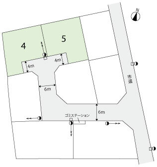 | 設備 | 電気=自由化 上水道=公営水道 し尿・雑排水=公共下水道 ガス=各戸プロパン 雨水=浸透方式 雨水桝=無 宅地内雨水浸透槽区画=有(No.6) |