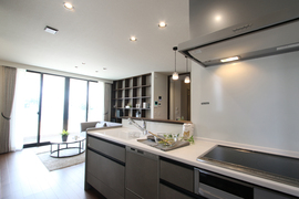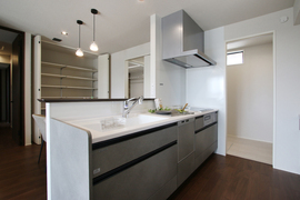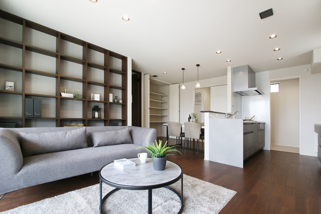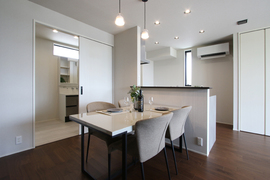 ・落ち着いた雰囲気のアーバンシックなインテリア ・キッチン横からランドリールームを通って洗面へ抜ける家事ラク動線 ・行き止まりのない回遊動線で使いやすい間取り