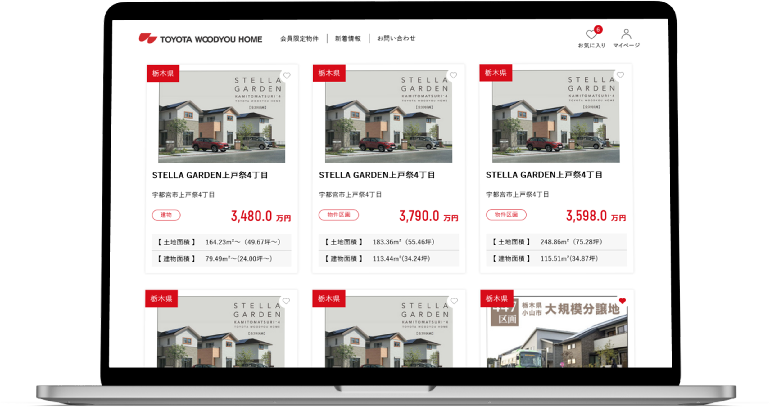 | 分譲地 | 価格 | エリア | 区画 | 土地面積 | 建物面積 | お気に入り | 詳細 | |
