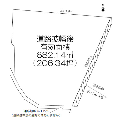物件概要 物件番号 A-880 物件名 宇都宮市宝木町2丁目 所在地 宇都宮市宝木町2丁目 交通 JR宇都宮線『宇都宮』駅まで徒歩77分(約6.1km) 学区 宝木小学校・宝木中学校 用途地域 第一種中高層住居専用地域 地目 山林 建ぺい率 60% 容積率 200% 土地面積 717.00m2(216.89坪) 販売価格 39,800,000円(非課税) 引渡時期 相談(駐車場解約後) 設備 公営水道(メーター無し)・公共下水(引込なし)・個別プロパン 接道 東側 約12m 私道負担 なし 法令上の制限 景観法、宅地造成工事規制区域 取引態様 一般媒介 備考 ・ 道路拡幅について 前面道路は都市計画道路です。現況幅員12mから13.75mへの拡幅計画が あります。拡幅部(上図 斜線部分面積 36.19㎡)は宇都宮市が買収予定で す。詳細は、同市道路用地課(028-632-2507)にご確認下さい。 ※1 引込20㎜、加入権13㎜あり。メーター設置必要 ※2 受益者負担金 275円/㎡ (現在、猶予中) ・宇都宮市立地適正化計画:居住誘導区域内 ・計画道路 3・5・109 中丸野沢線(計画決定) ・公拡法 届出必要 情報更新日 2025年12月15日 次回更新予定日 2026年1月15日