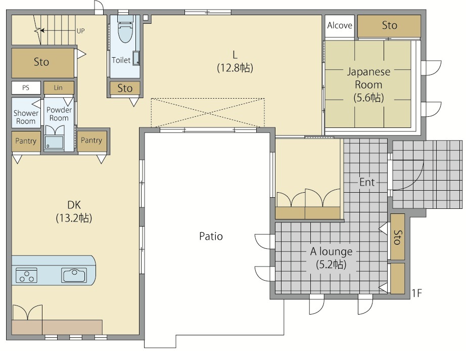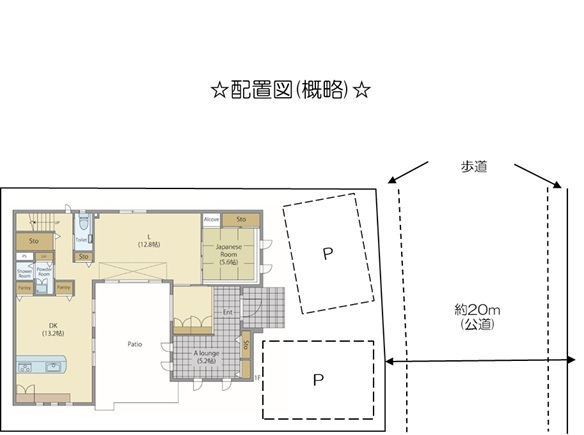 • □リビング約12帖、ダイニングキッチン約13帖とゆとりある空間に設計
