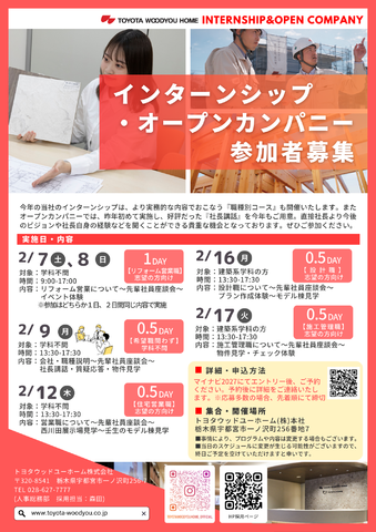 「住まいづくり」に関わる業務を体感できるインターンシップを開催いたします。