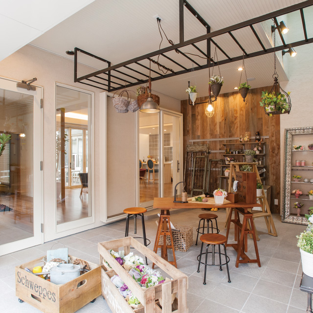 リビングからウッドデッキを通ってガーデンスペースへ。階段を使うことなく思い立ったら外に出られるのは平屋ならでは。室内とガーデンスペース、それらをゆるやかに繋ぐ空間。平屋では屋外の空気までもお気に入りのインテリアのひとつになります。
