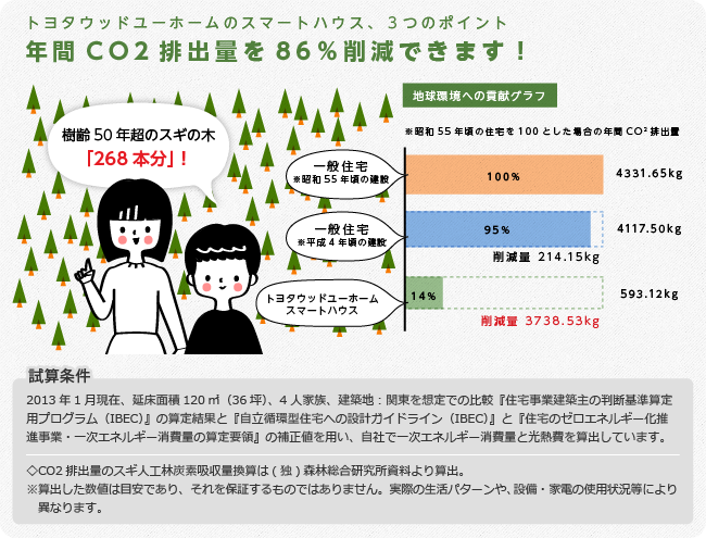 年間CO2排出量を86%削減するスマートハウス。私たちが見据えるのは、将来の世代を考えたこれからの暮らしです。