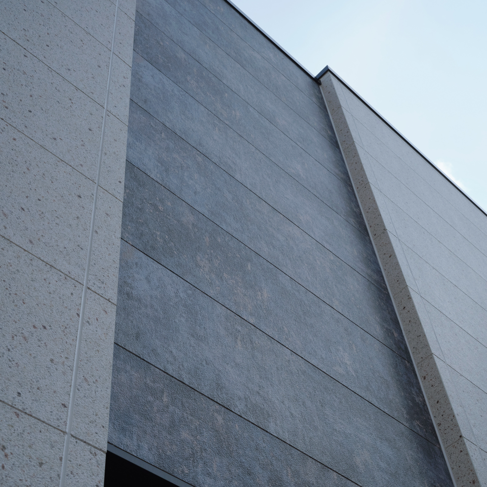 ファサード面に窓を一切配置しないという徹底したデザインのこだわりを実現するために、正面からは見えない部分に様々な工夫を施しています。
