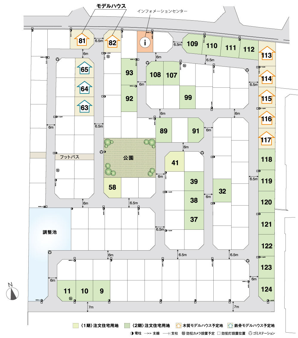 | 管理組合について | ・入会金(入会時のみ):50,000円、管理費:1,000円/月の予定です。 ・分譲地の出入り口付近には管理組合が維持管理運営する防犯カメラを 設置する予定です(全4か所)。 ・管理組合規約は検討中です。 管理組合が管理する防犯カメラ設置予定宅地 宅地No.11(南東)、No.71(北西)、No.81(東)、No.96(東) お客様へご説明のうえ販売してください。 (電気料等は管理組合で負担。土地使用料の支払いはありません。) |