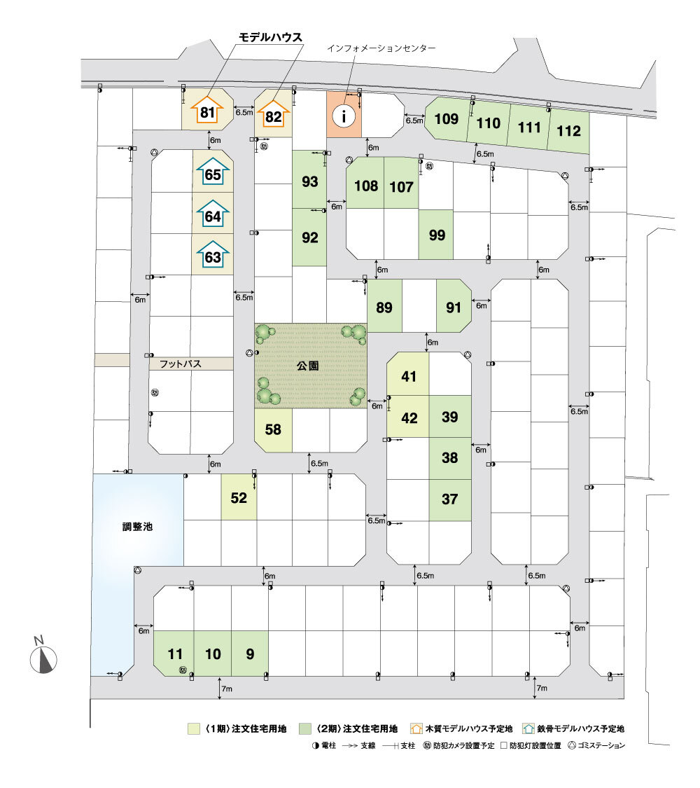 | 管理組合について | ・入会金(入会時のみ):50,000円、管理費:1,000円/月の予定です。 ・分譲地の出入り口付近には管理組合が維持管理運営する防犯カメラを 設置する予定です(全4か所)。 ・管理組合規約は検討中です。 管理組合が管理する防犯カメラ設置予定宅地 宅地No.11(南東)、No.71(北西)、No.81(東)、No.96(東) お客様へご説明のうえ販売してください。 (電気料等は管理組合で負担。土地使用料の支払いはありません。) |