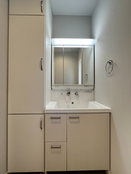 ホールに独立の洗面台は収納もたっぷり