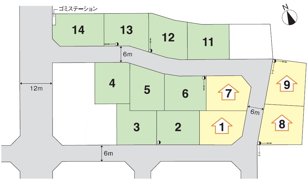 道路  新設(開発):6.0mアスファルト舗装 既存道路:西側12m、南側6m