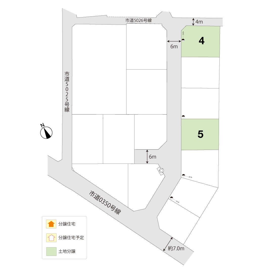 | 道路 | 西側6.0mアスファルト舗装、北側4.0m二項道路 |