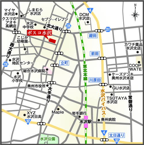 | 交通 | JR東北本線(黒磯~盛岡) 水沢駅 徒歩21~22分 |