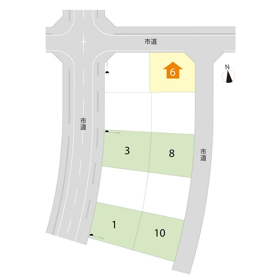| 道路 | 北側市道8.5m(歩道含む) 東側道路6.0m 西側市道12.0m(歩道含む) |