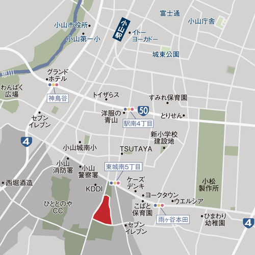 • 小山警察署○約1,100m~1,700m ○徒歩14分~22分