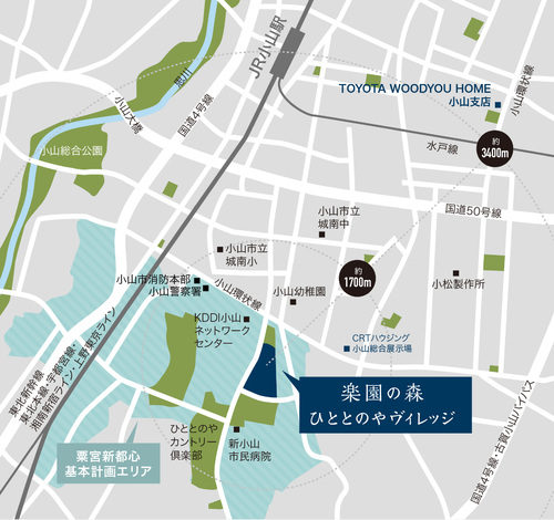 | 交通 | おーバス「ひととのやヴィレッジ」バス停::約80m~約320ⅿ 徒歩1分~4分 JR宇都宮線「小山」駅までバス乗車約19分 JR東北本線「小山」駅:: 約3,300m~約3,900ⅿ 車8分~10分 |
