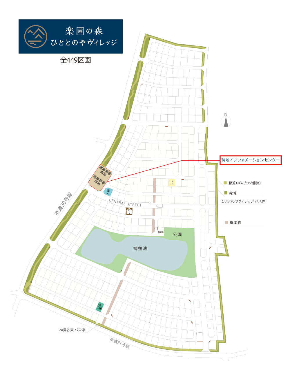 | 道路 | 主幹線道路=幅員12m・アスファルト舗装(内 歩道=幅員2.5m、両側、インターロッキング舗装)副幹線道路=幅員9m・アスファルト舗装(内 歩道=幅員2m、片側、インターロッキング舗装) |