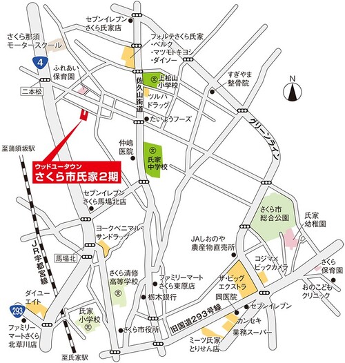 | 交通 | 国道4号線約350m ~ 450m JR宇都宮線「蒲須坂」駅約2,700 m~ 2,800m JR宇都宮線「氏家」駅約3,100 m~ 3,200m |