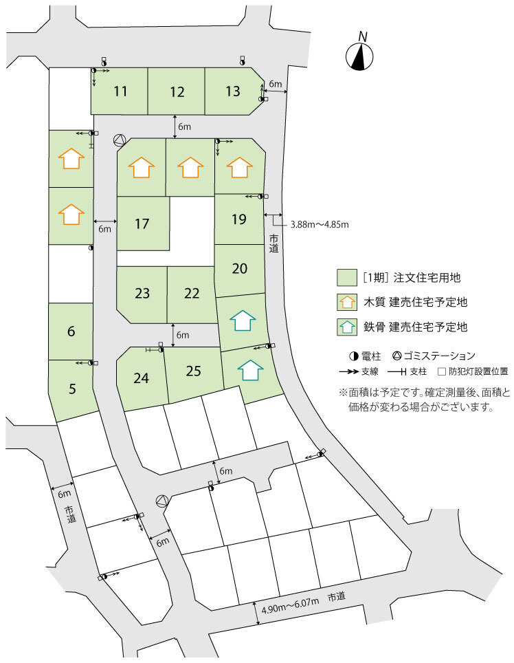 | 道路 | 新設(開発):6.0mアスファルト舗装 既存道路:東側3.88~4.85m 南側4.9~6.07m |