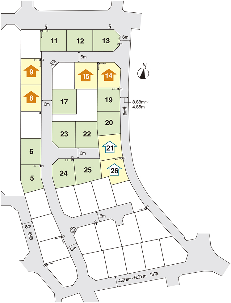 | 道路 | 新設(開発):6.0mアスファルト舗装 既存道路:東側3.88~4.85m 南側4.9~6.07m |