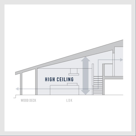 各部屋が廊下を介さず直接つながるから、空間にゆとりのあるプランニングが可能。また、2Fフロアがないため高い吹き抜けなど、天井の高さも思いのままに。平屋ならではの余裕のある空間は、快適な時間の流れを演出します。